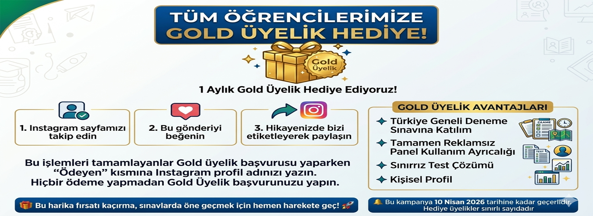 Tüm Öğrencilerimize 1 Aylık Gold Üyelik Hediye!